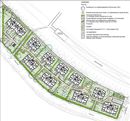 Neubau von 10 Mehrfamilien-Villen und Tiefgarage mit 110 Stellplätzen auf modelierten, stark begrünten Gelände mit hervorragender Verkehrsanbindung